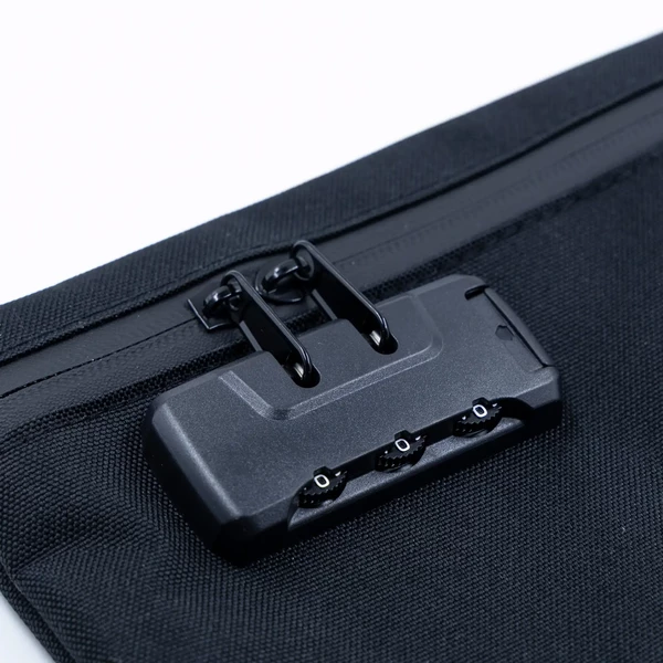 Mantén tu hierba, accesorios, papeles, grinders, comestibles y todo lo demás totalmente protegidos y discretos con nuestra nueva bolsa con cierre de seguridad. Fabricada con nailon 1680D resistente y con un tamaño de 27 x 16 cm, este estuche hermético premium ofrece mucha más capacidad interna que nuestros modelos estándar, dándote espacio para viajar bien preparado. El cierre de combinación integrado añade un nivel extra de seguridad, convirtiéndola en la bolsa para guardar con cierre de seguridad ideal para festivales, viajes, alojamientos compartidos y cualquier situación donde la discreción sea importante.