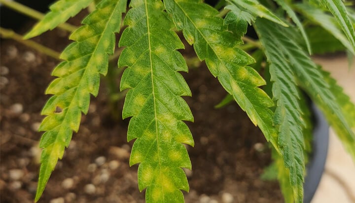 Síntomas de la mancha amarilla en las hojas de marihuana