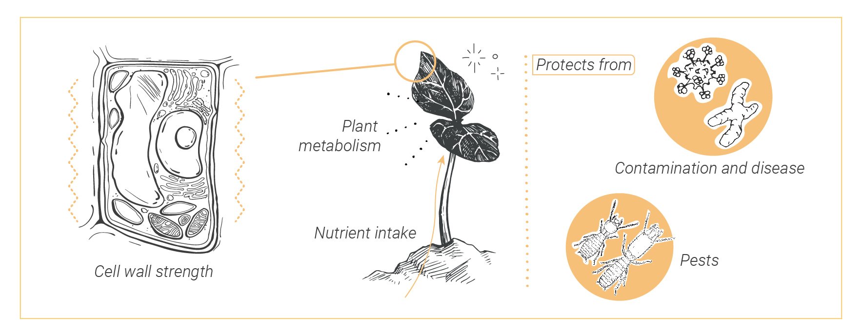 El silicio ayuda a fortalecer las paredes celulares de las plantas, lo que les otorga una mayor resistencia al estrésmecánico y osmótico (disfunción fisiológica causada por un cambio repentino en la concentración del soluto, que provoca una alteración rápida en el movimiento del agua a través de su membrana celular).
